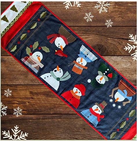 Snowmen Wool Applique Runner Pattern: Winter Table Decor (ATN 2420)