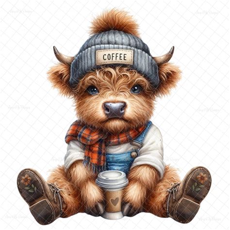 Coffee Cow PNG, Highland Cow PNG, Funny Decal, Highland Cow, Sublimation, Funny Cow, DTF, Digital Download, Cow Waterslide Images, Tumblers