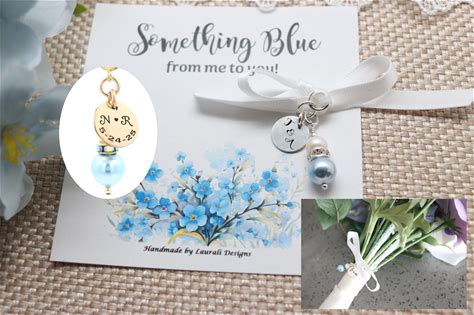 Bridal Shower Gift, Something Blue For Bride, Wedding Gifts For The Couple, Engraved Bride Gift From Mom Friend Something Blue Bouquet Charm