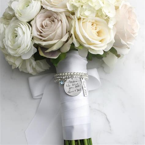 Something Blue For Bride, Engraved Bride Gift From Mom, Something Blue Bouquet Charm, Bride Gift From Mom Bridal Bouquet Charms Wedding Date