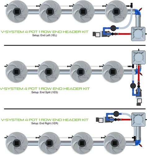 Alien Hydroponics V-System DWC - 4 Pot 1 Row Header, End Header
