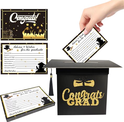 Tinlade Graduation Card Box With 30 Pcs Grad Advice Cards 2025 Congrats Grad Card Holder Box Graduation Party Supplies For School Class Of 2025 Party
