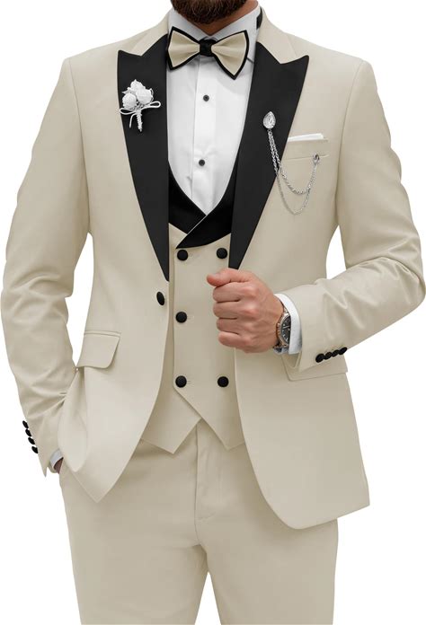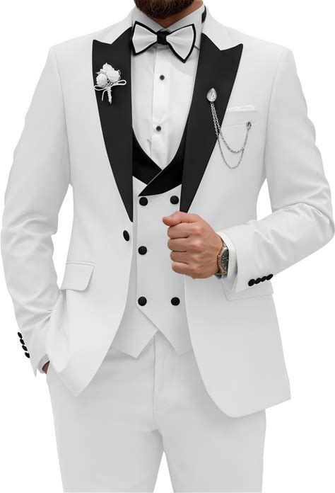 White And Rose Gold Tuxedo Suit - Wedding Groom Vested Suit White And Pink / 44 Regular Jacket+38 Waist Adjust 34To40)(Height: 5'7"-6')(Neck 16.5-18:L-XL