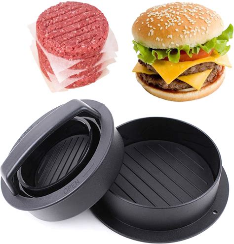 Meykers Burger Press - 3-In-1 Hamburger Patty Maker With Non-Stick Mold And 100 Wax Papers For Stuffed Cheeseburger, Slider