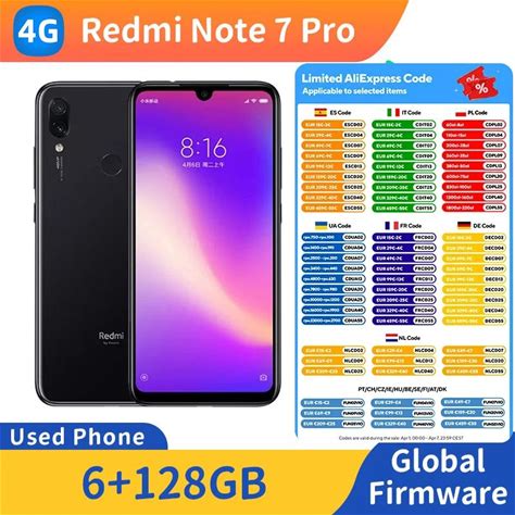 Redmi Note 7 Pro 4G 2340X1080px RAM 6GB ROM 128GB 6.3 Inch 4000 Mah 48MP Used Phone