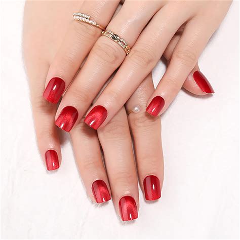 Stbisen Red Press On Nails Short Square, Cat Eye Press On Nails, Fashion Gel Fake Nails, Reusable Acrylic Fake Nails, Glossy Stick On Nails For Women