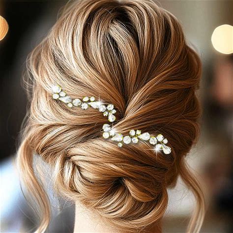 Easedaily Rhinstone Bride Wedding Hair Pins Silver Crystal Bridal Hair Pieces Hair Accessories For Women And Girls (Pack Of 2) (A-Silver)