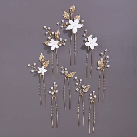 Handmade Pearl Bridal Wedding Hair Pins 9Pcs White Flower Gold Leaf Pearls Clips Bridal Hair Accessories For Women Brides Bridesmaid