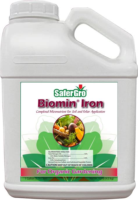 Safergro Biomin® Iron, Organic Liquid Fertilizer, Complexed Iron For Iron Deficiency Or Supplement, Soil And Foliar Application, 1 Gallon