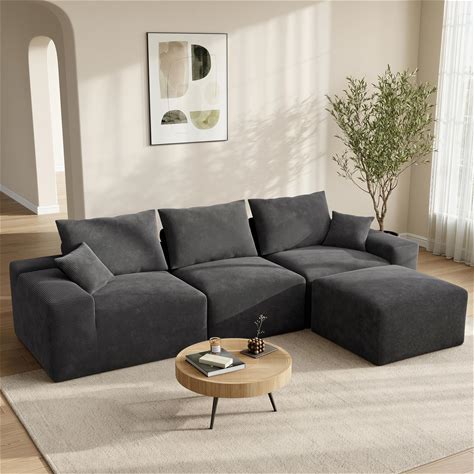 Belffin Modular Sectional Sofa With Ottomans Velvet Reversible Sleeper Chaise Bed Storage Seat Black