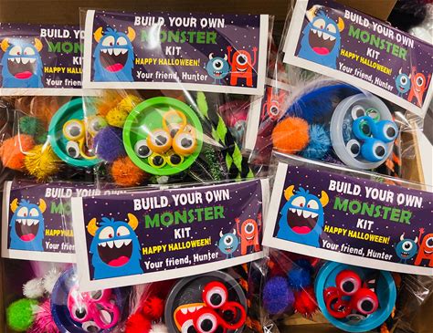 Build Your Own Monster Kits, Halloween Party Favors For Kids, Fidget Toy Gift, Trick Or Treat, Non-Food Treat, Personalized Labels