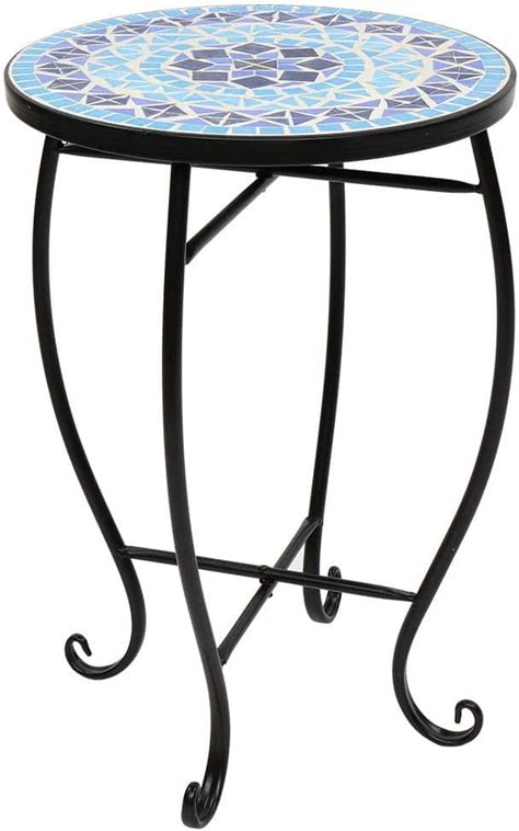 Metal And Ceramic Tile Mosaic Patio Side Table