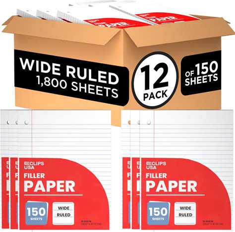 Wide Ruled Loose Leaf Paper Wide Ruled Notebook Paper Lined Writing Filler Paper 10.5" X 8" 56 Gsm 1800 Sheets 150 Sheet Per Pack (12 Pack)