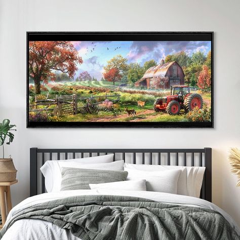 Red Barn Tractor Canvas Print: Tranquil Farmhouse Wall Art