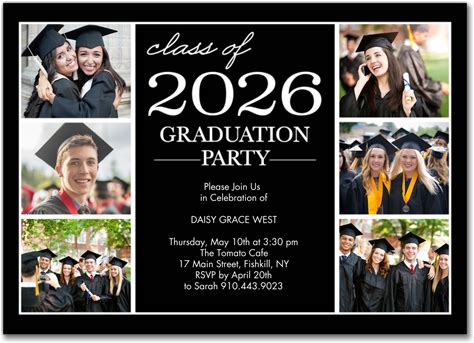 Graduation Invitations: Graduation Party 2026, 20 Qty, Flat Card Set, 5X7, Premium Cardstock, Black, 4+ Photos, By Snapfish