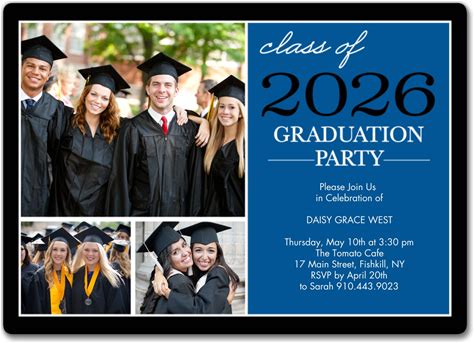 Graduation Invitations: Graduation Party 2026, 20 Qty, Flat Card Set, 5X7, Premium Cardstock, Blue, 3 Photos, By Snapfish