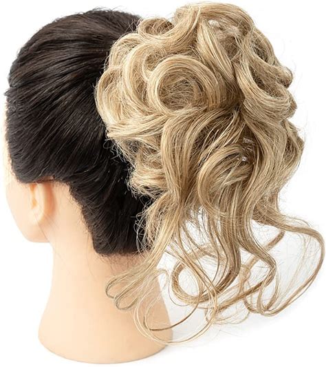 Messy Hair Bun Hairpiece For Women Clip In Claw Hair Pieces Synthetic Chignon Super Long Tousled Updo Hair Bun Extensions Wave Curly Hairpieces For Da