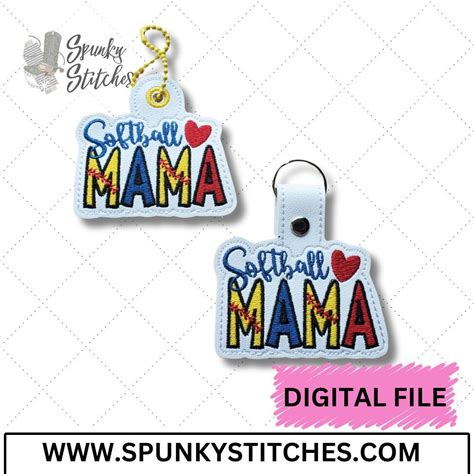 Softball Mama Key Fob And Zipper Pull In The Hoop Embroidery File By Spunky Stitches