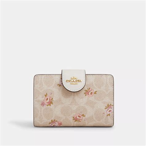 COACH Outlet Medium Corner Zip Wallet In Signature Canvas With Floral Print - Women's Wallets - Beige, Size: Mini