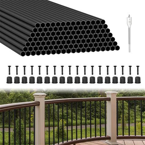 Muzata 100Pack 36" Aluminum Deck Balusters Round Black Deck Railing Stair Porch Staircase Spindles 3/4" Diameter Hollow For Railing Fencing Porch