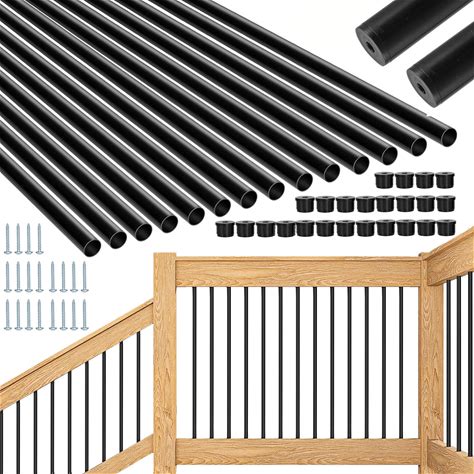 SCARIU 26 Pack Deck Balusters 36"Thicker Rectangle Staircase Baluster Black Metal Deck Spindle And Stairs Railing,Hollow Rectangle Deck Balusters For