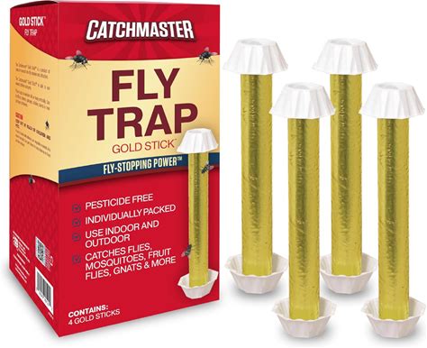 Catchmaster Gold Stick Fly Trap 4-Pk, Bug & Fruit Fly Traps For Indoors & Outdoors, Premium Adhesive Mosquito, Gnat, & Bug Catcher, Insect Killer,