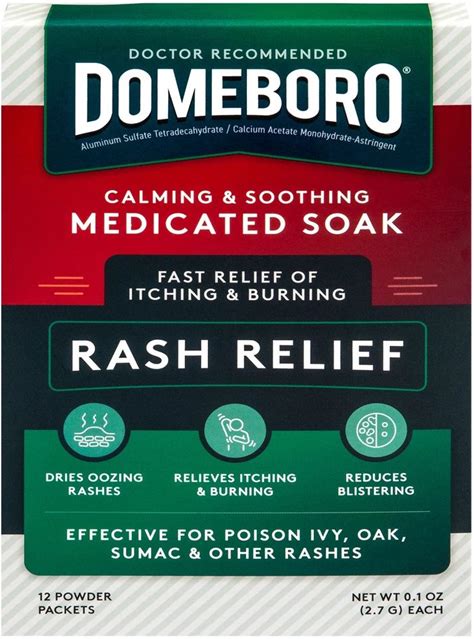 Domeboro Medicated Soak Astringent Powder Packets, Calming Rash Relief, Soothes Itchy Or Irritated Skin, Dermatologist-Trusted, 12 Count