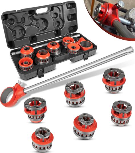 Toolant Ratchet Pipe Threader Kit, NPT 1/4" - 1-1/4" Manual Ratcheting Pipe Threader, Portable Pipe Threading Tool Set With 6PCS NPT Dies, Storage