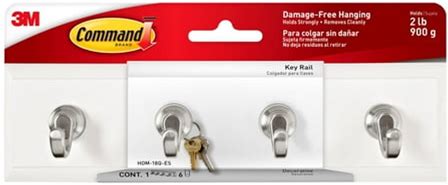 3m Command Key Rail - 4 Hooks, Adhesive, Easy Installation - 2 Pack, 12 Strips Included