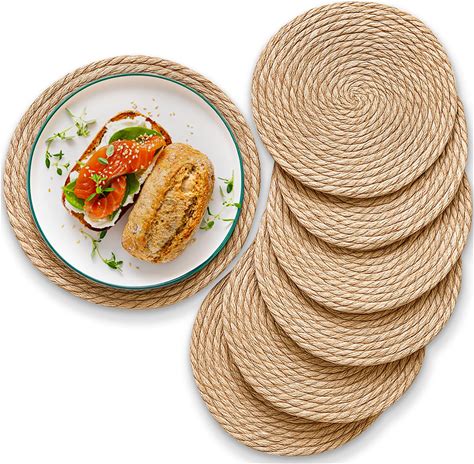 Handmade Boho Placemats Set Of 6, Natural Cotton Burlap And Water Straw Woven, Macrame Decor, Farmhouse Style | Rustic Boho Braided Wicker Table Mats