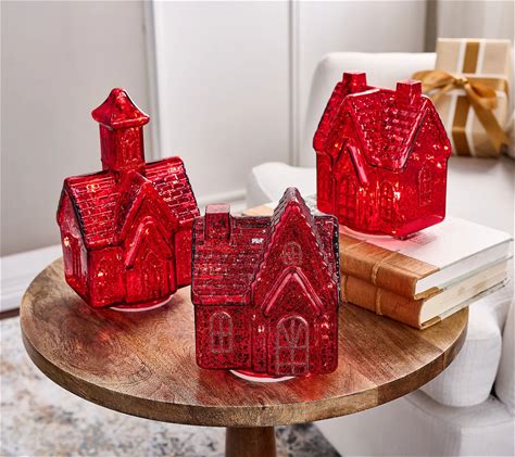 3-Piece Illuminated Mercury Glass Village By Valerie,Red