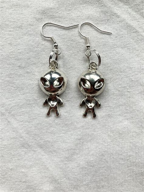 Alien Silver Earrings | Emo Goth Cool Fashion Rock Tattoo Space Nature