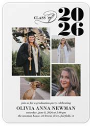 Graduation Invitations: Script Class | Classic | 5X7 | Flat | White | 4 Photos | Standard Smooth Cardstock | Rounded | Shutterfly
