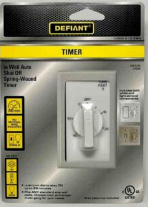 Defiant Auto Shut Off 60-Minute In-Wall Spring Wound Loaded Countdown Timer