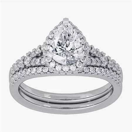 Signature By Modern Bride (H-I / Si1-Si2) Womens 1 1/2 CT. T.W. Lab Grown White Diamond 10K White Gold Pear Side Stone Halo Bridal Set, 9, White