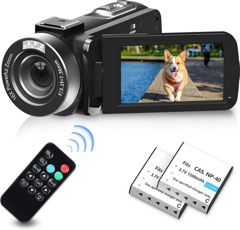 1080P 30FPS Video Camera Camcorder,Video Camera For Youtube With SD Card Mic IR Night Vision Remote Control Mini Tripod 2 Battries 3 in Rotation Touch Screen