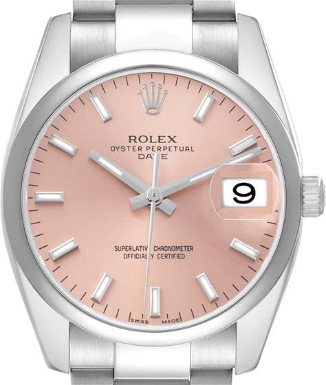 Rolex Date Pink Dial Oyster Bracelet Steel Mens Watch 115200