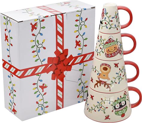 Amazon.com: over&back Stackable Stoneware Coffee Mugs - 4-Piece