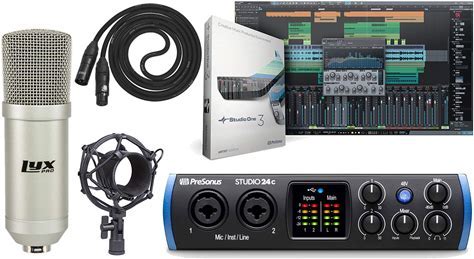 Presonus Studio 24C 2X2 USB Type-C Audio/MIDI Interface And Studio One Artist Software Kit With Condenser Microphone Shockmount, And XLR Cable