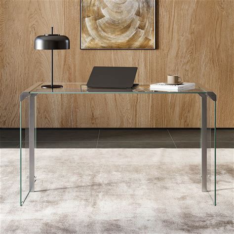 Glass Computer Desk, Transparent Tempered Glass Laptop Table With Rounded Edges Desks, Sofa Table - 8' X 11' - Clear