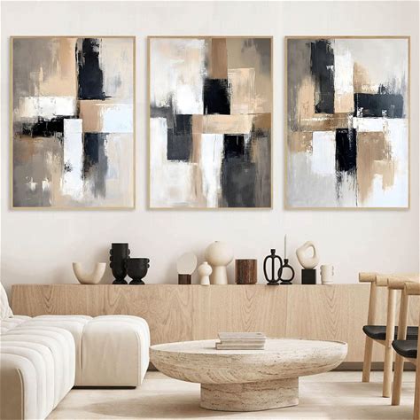 Black Abstract Wall Art Beige Painting Beige And Gray Picture Black White And Grey Posters Abstract Geometric Wall Art Modern For Living Room