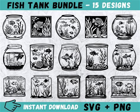 Fish Tank SVG Bundle: Aquarium Clipart, Silhouette Vector (Instant Download)