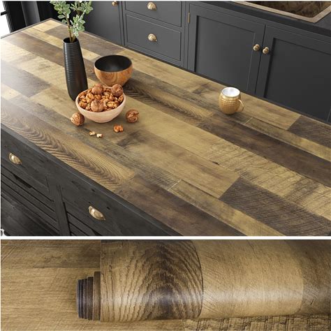 VEELIKE Butcher Block Countertop Contact Paper 32''X354'' Thick Wood Wallpaper Peel And Stick Countertops For Kitchen Waterproof Self Adhesive