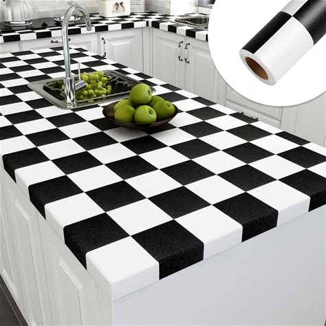 YENHOME 30"X118" Checkered Contact Paper Peel And Stick For Walls Countertop Removable Black And White Wallpaper For Bedroom Kitchen Backsplash Self