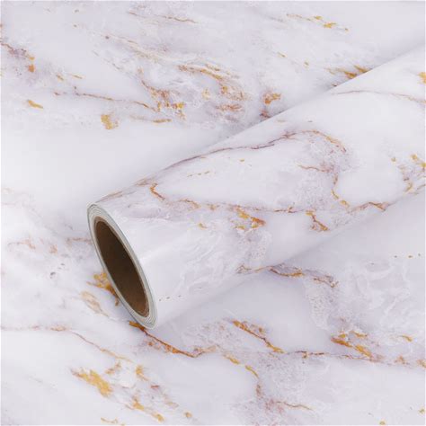 LACHEERY Kitchen Counter Top Peel And Stick Waterproof 24 X 317 Inch Thick White Marble Contact Paper Peel And Stick Marble Countertop Wallpaper For