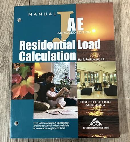 Residential Load Calculation Manual JA , Abridged Edition Hank Rutkowski,Air Conditioning Contractors Of America,P.E. [Used - Very Good] [Softcover]