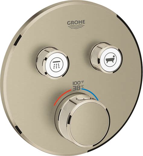 Grohe 29 137 Grohtherm Dual Function Thermostatic Valve Trim Only With Triple Knob Handles And Volume Control - Less Rough In Brushed Nickel Showers