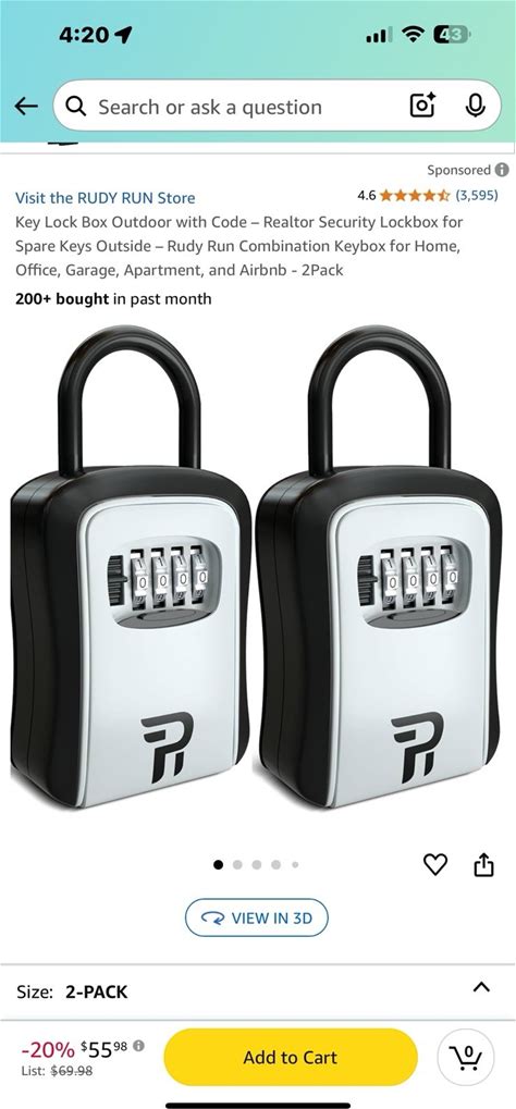 Rudy Run 2 Key Lock Box Outdoor With Code - Realtor Security Lockbox For Keys