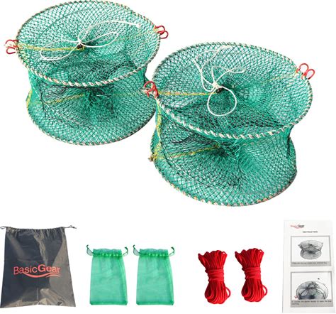 Basicgear Crab Spring Trap 2 Pcs - Bait Trap For Lobster, Crawfish, Shrimp, Portable Folding Collapsible Fishing Traps Nets Fishing Accessories