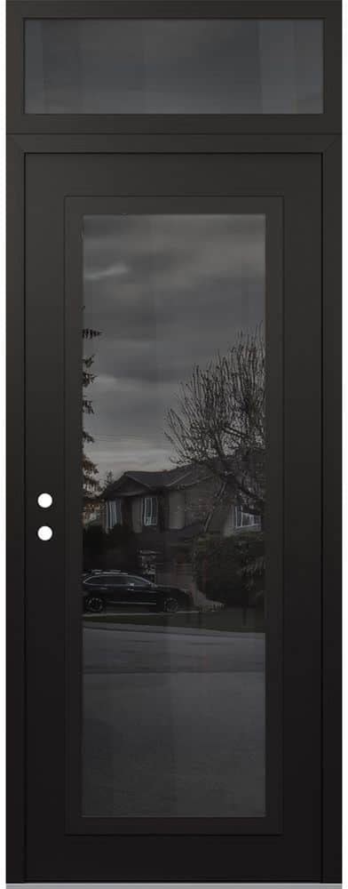 C1 36 in. X 96 in. Black P Right-Hand/Inswing Mirrored Glass Black/Black Transom Steel Prehung Front Door